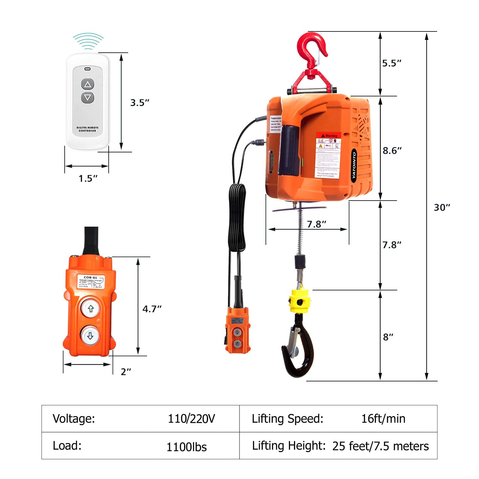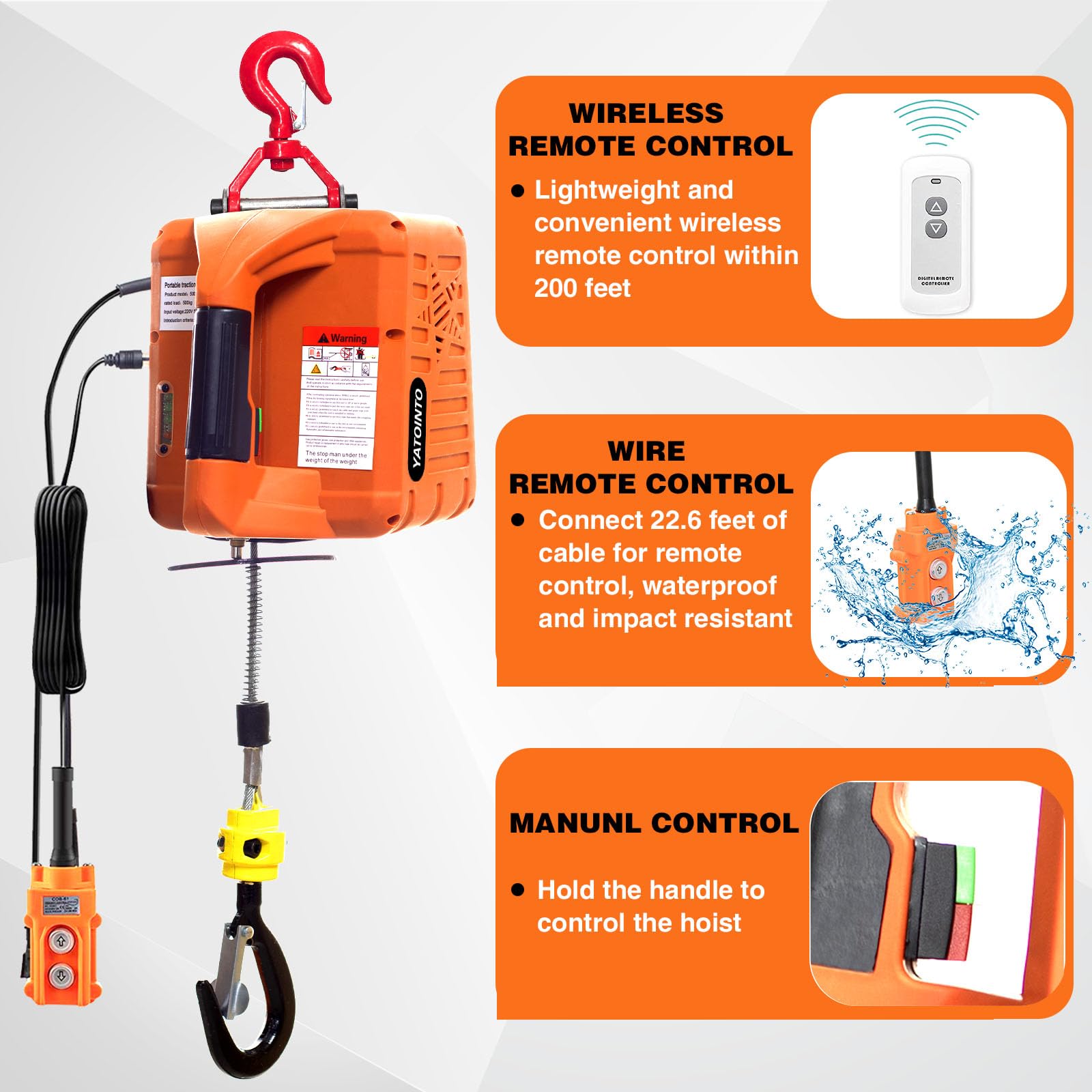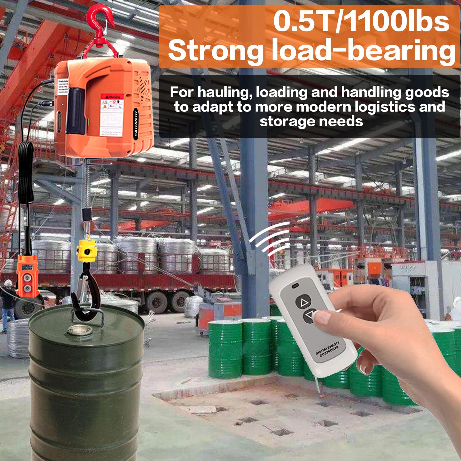 YATOINTO 3 in 1 Electric Hoist Winch, 1100lbs Portable Electric Power Winch with Wire and Wireless Remote Control, 110V Electric Hoist Crane, Overload Protection 25ft Lifting Height for Towing