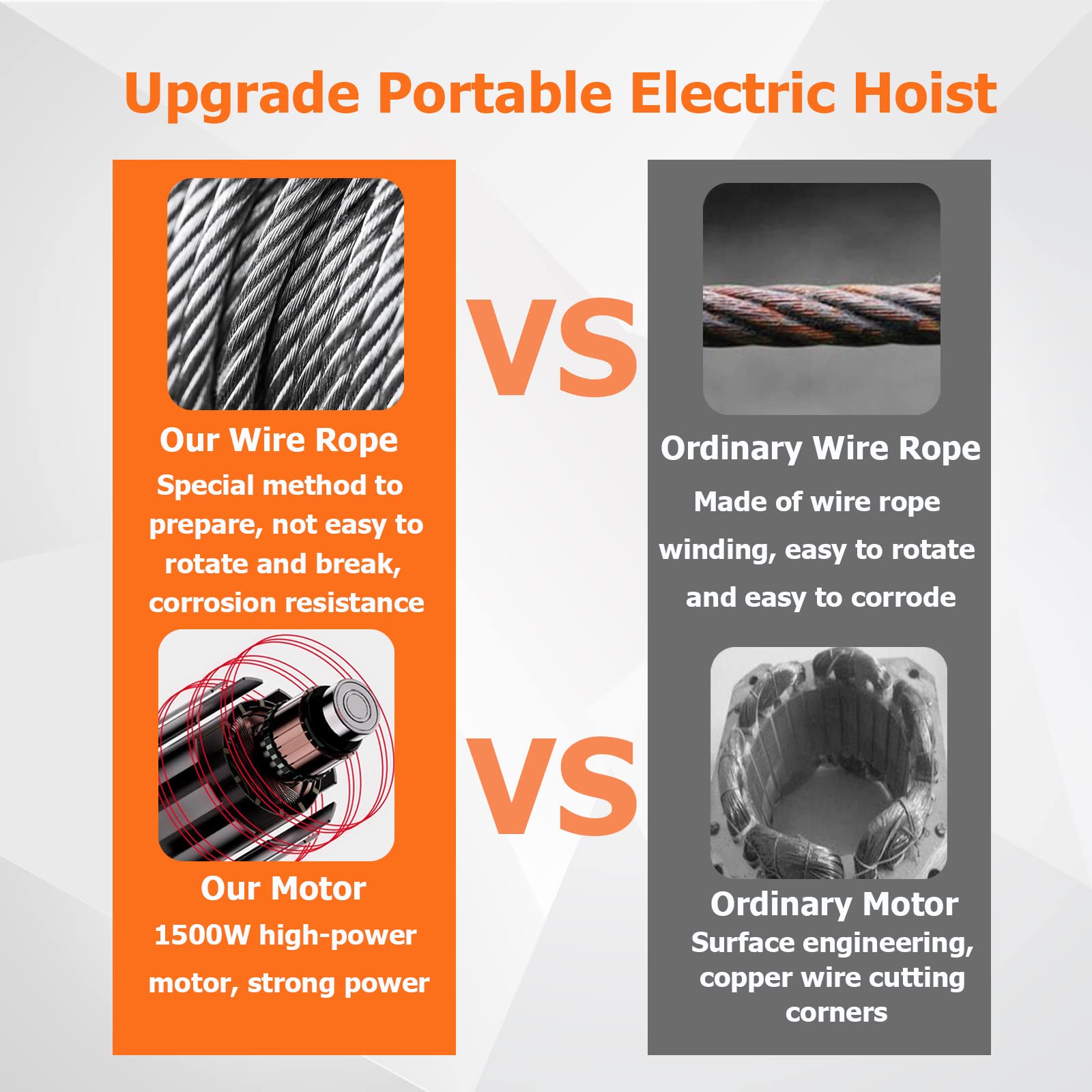 🔶Industrial Grade Material: ◼️ Pure copper motor: multi-copper winding, stable operation ◼️ Galvanized anti-rotation wire rope: anti-rotation and corrosion-resistant ◼️ Aluminum shell gearbox: high-strength industrial aluminum, the motor is not easy to be damaged