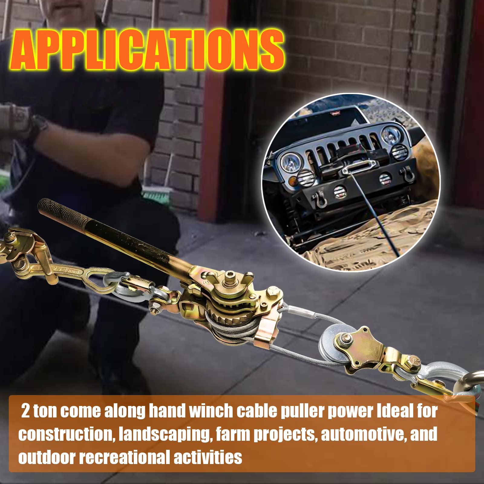 *【Multipurpose】Experience the power and versatility of our Come Along 2T Puller, which can lift and move heavy equipment, machinery, and more. It can be used for a wide range of applications, from construction to landscaping, agricultural engineering, automotive, outdoor activities, and more.