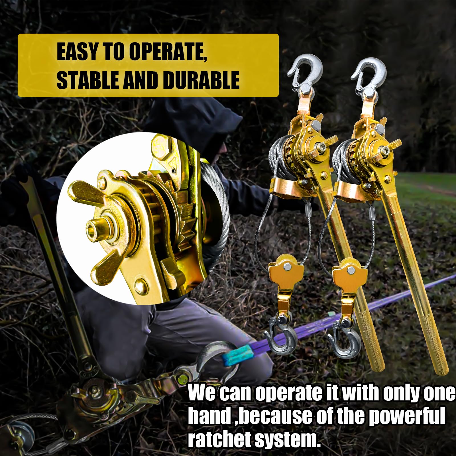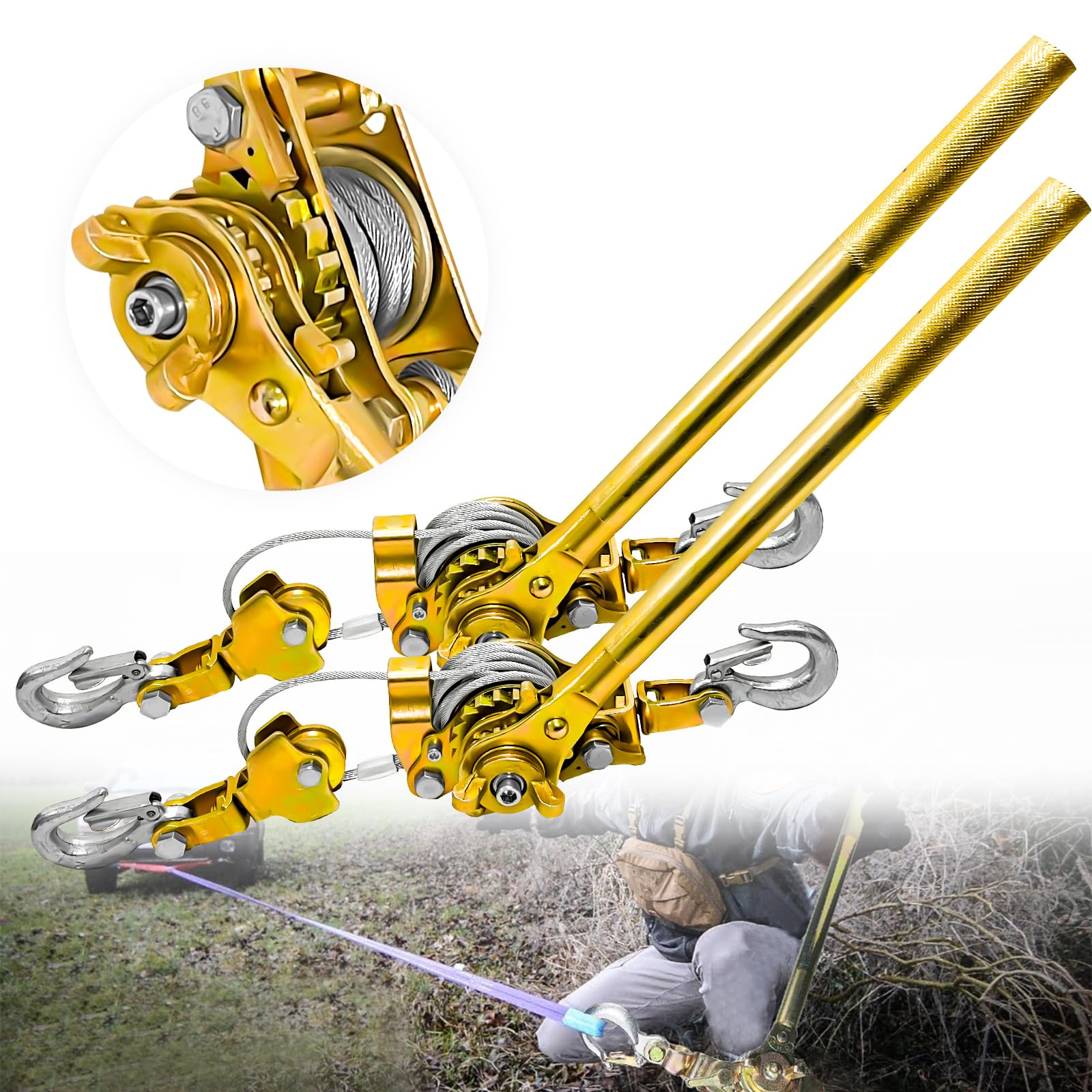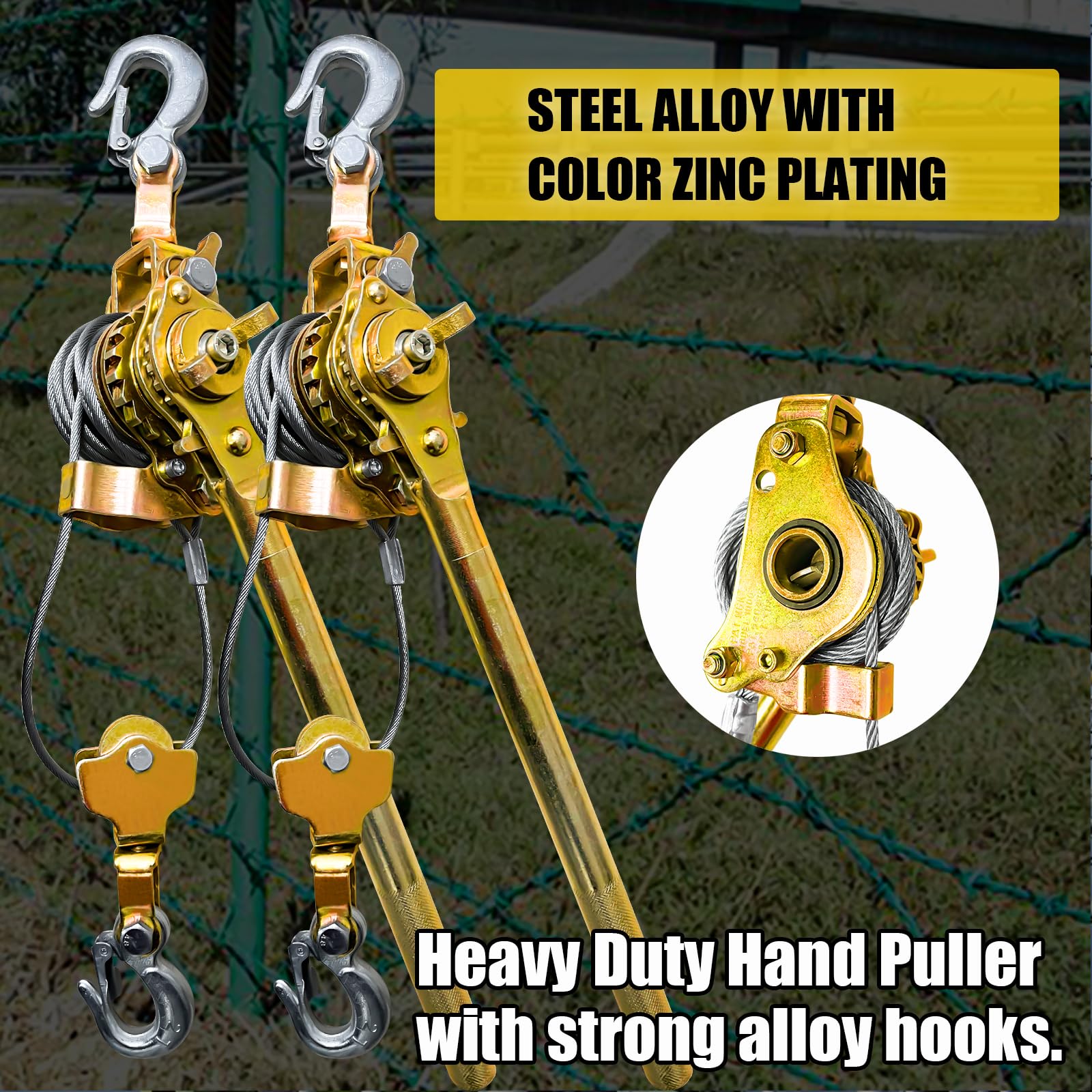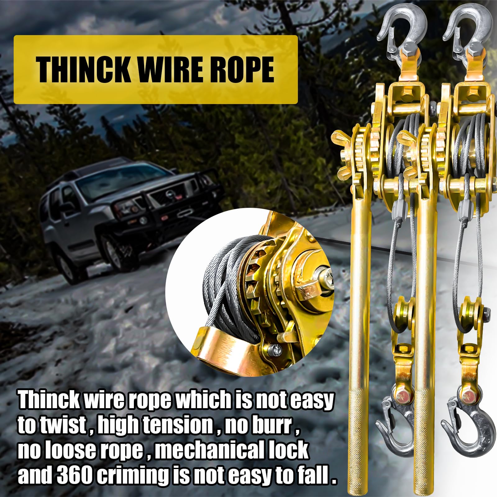 - đăVALUE PACKAGEăIncluded 2pcs 2 Ton/4400 LB Come Along Cable Pullers with heavy duty steel construction for added durability, thick body frame and comes along with solid metal gear.