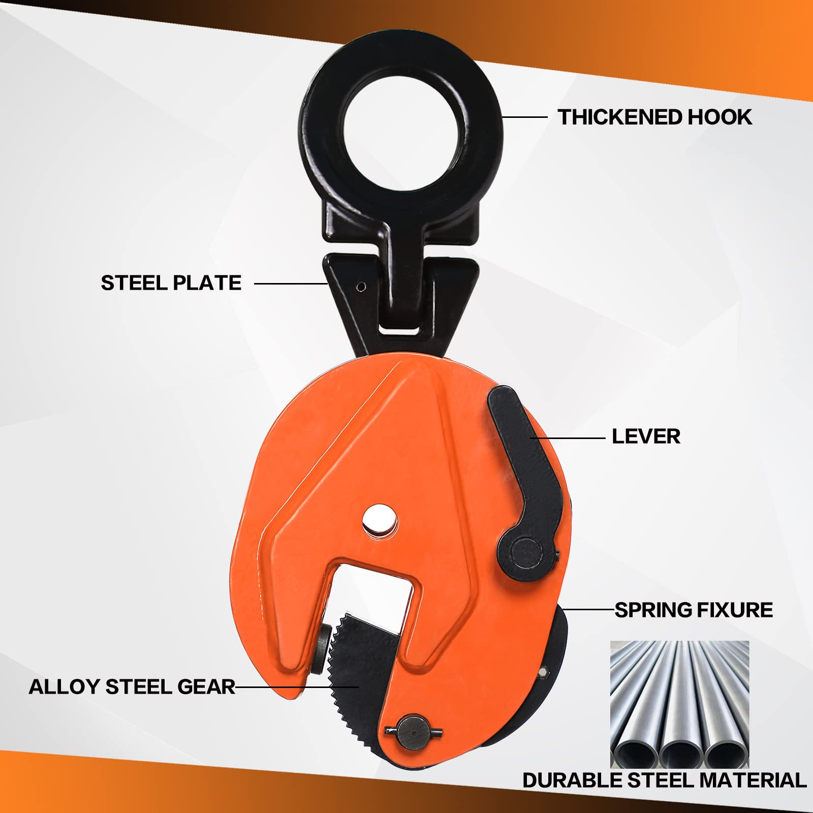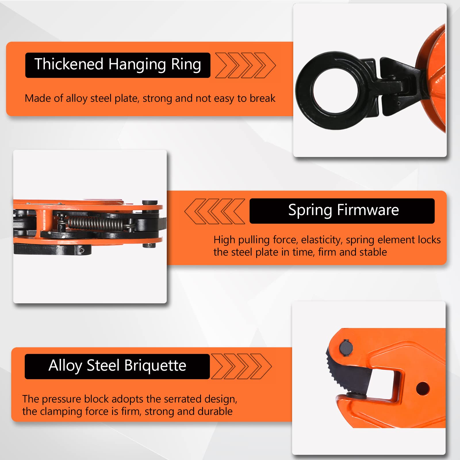 【 2T CAPACITY 】-- Lifting clamps, capacity 2T, Jaw opening up to 1.3'', Large diameter of sheet metal clamp can bear a variety of thickness of steel plate