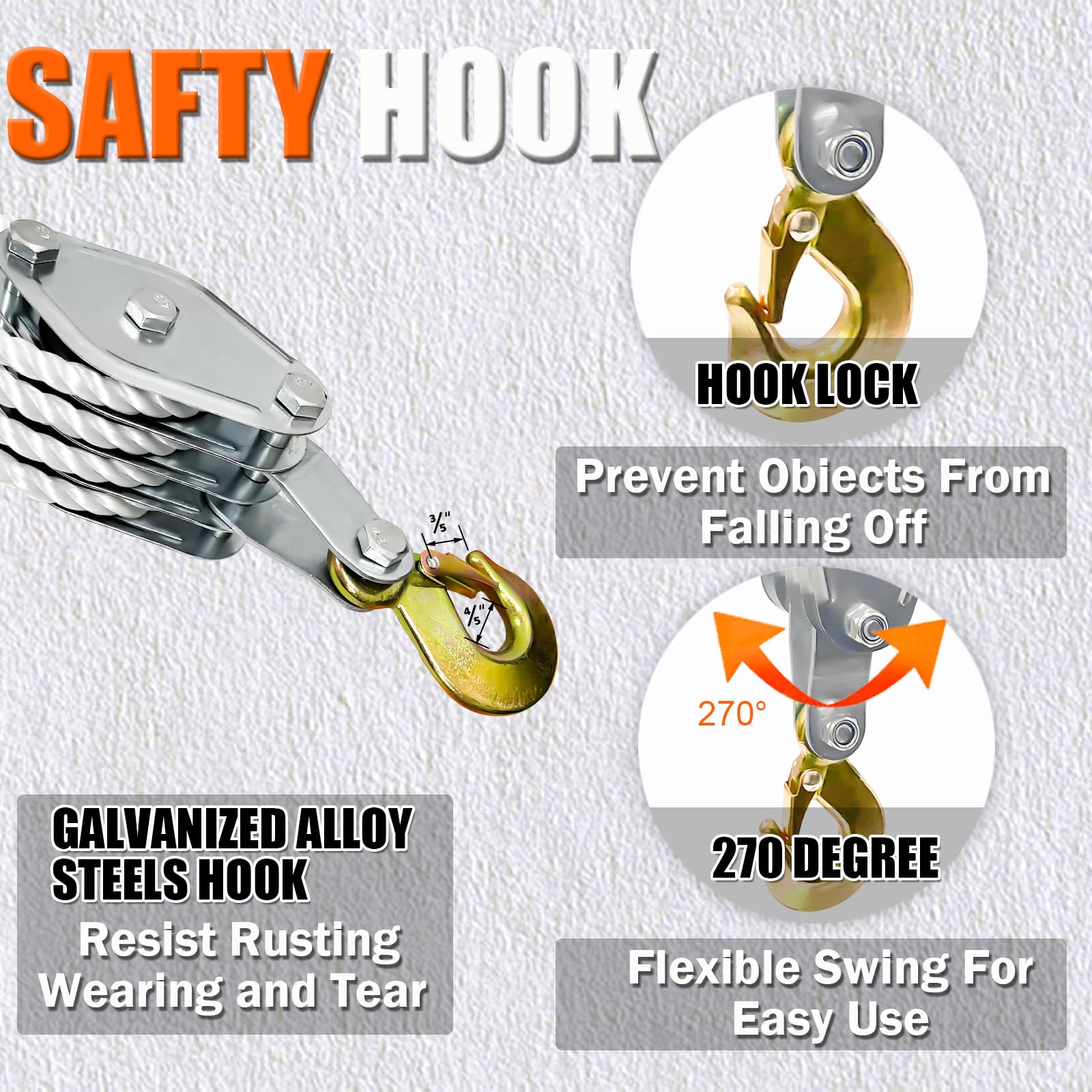 【Upgraded Material】:Rust-proof zinc-plated housing with alloy steels hook, metal bearing to resist rusting and it lasts longer than normal housing; Nylon rope puller to ensure NO BREAKING, NO FRAYING, NO FADING in the harshest conditions.