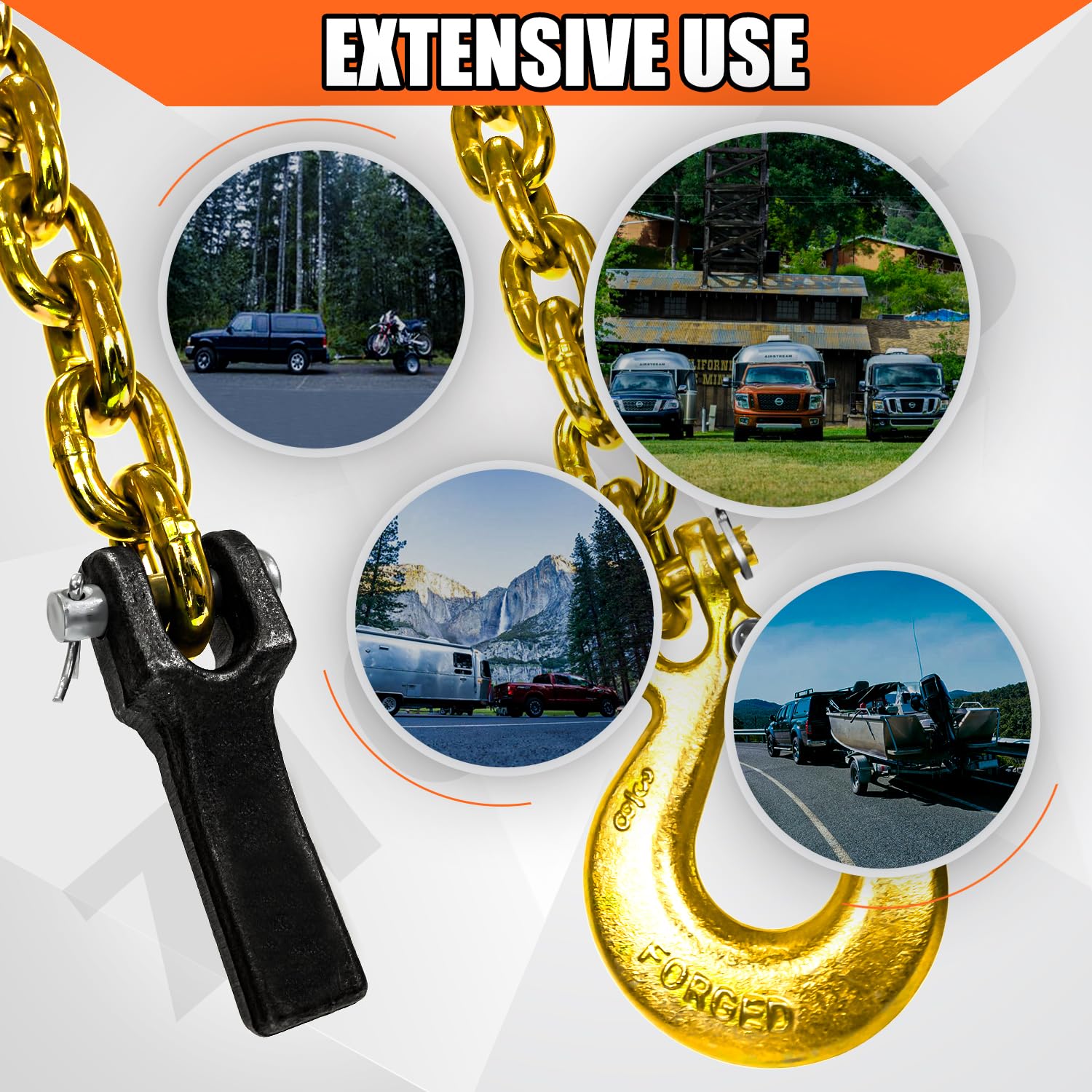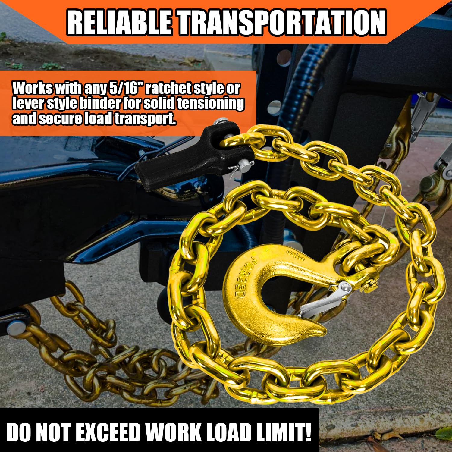 👍[ RELIABLE TRANSPORTATION ] -- This trailer safety chain has a grade-80 rating, providing exceptional tensile strength and resisting abrasions and wear from heavy cargo. Yellow zinc chromate finishes for corrosion protection and makes it easy for DOT officials to recognize.