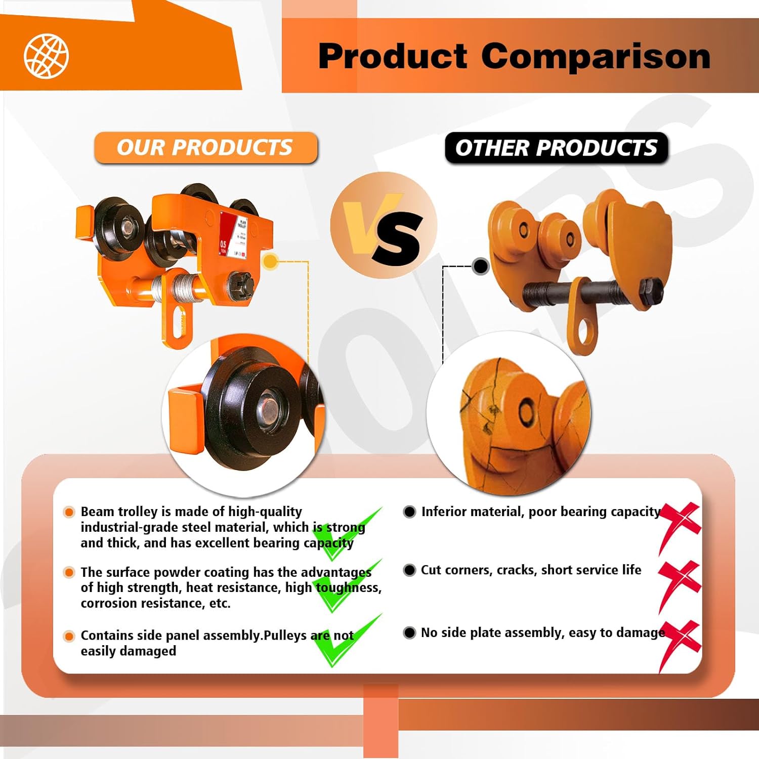 👍【Excellent Bearing Capacity】: Beam trolley is made of high quality low carbon alloy steel, making heavy duty work a good process.