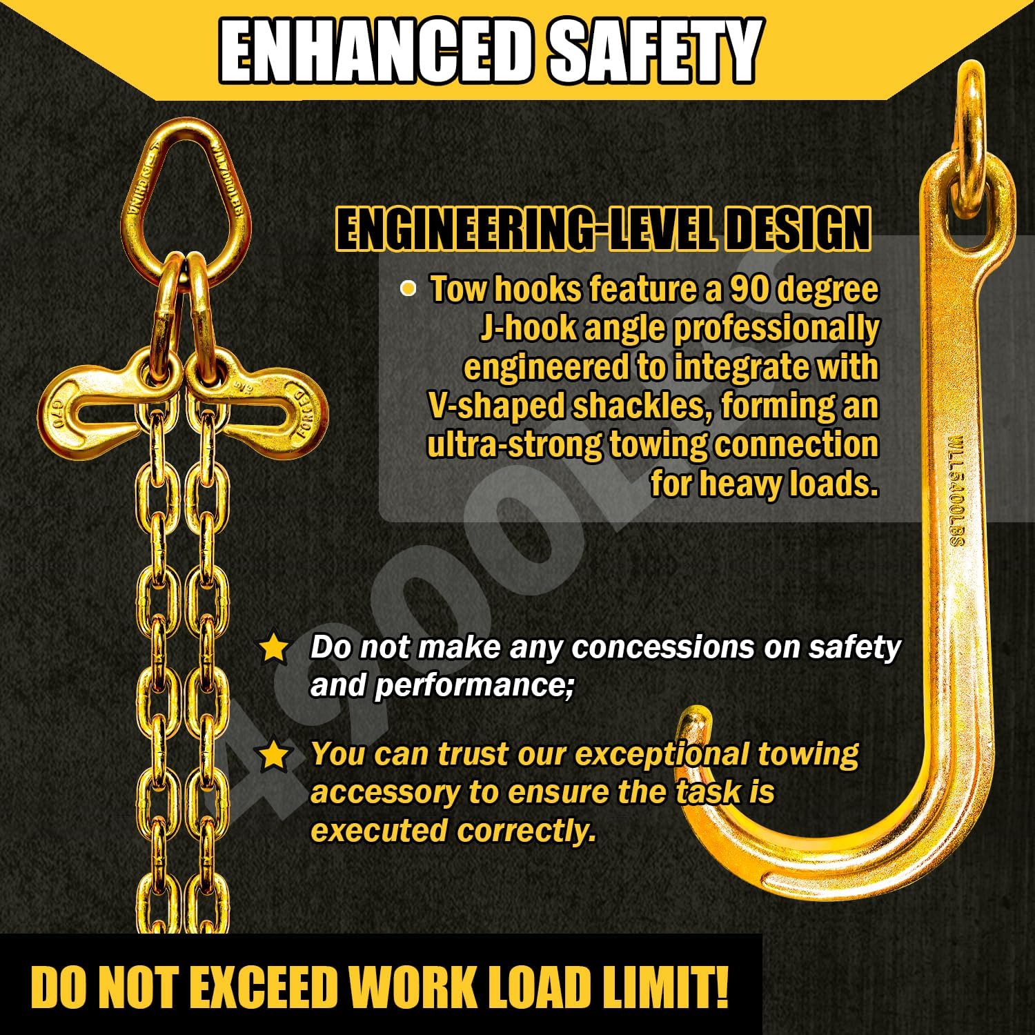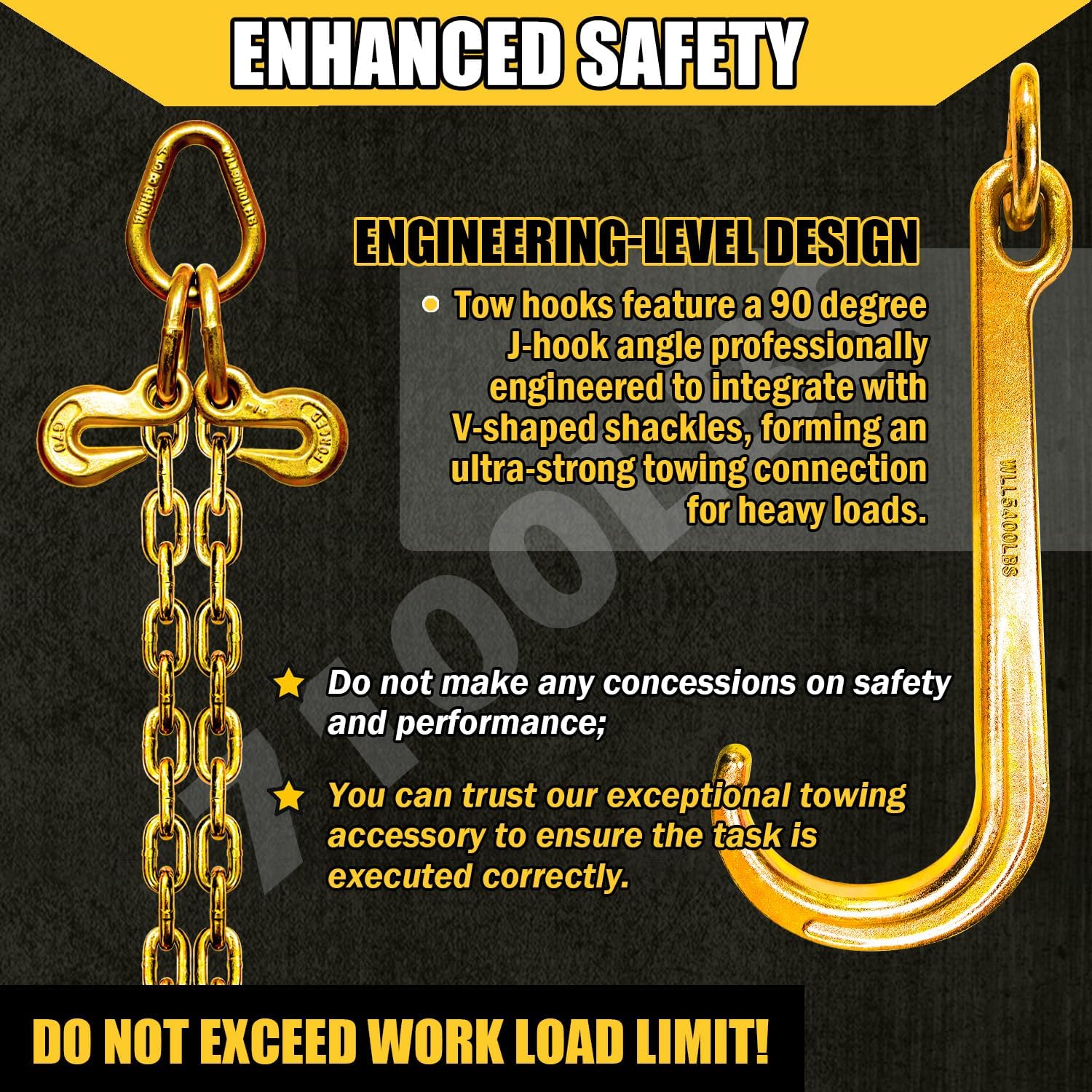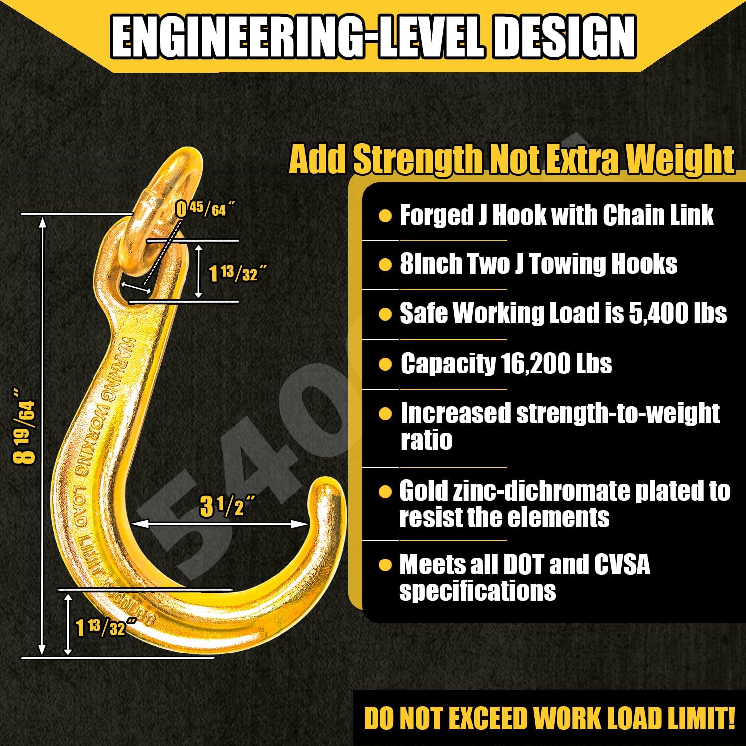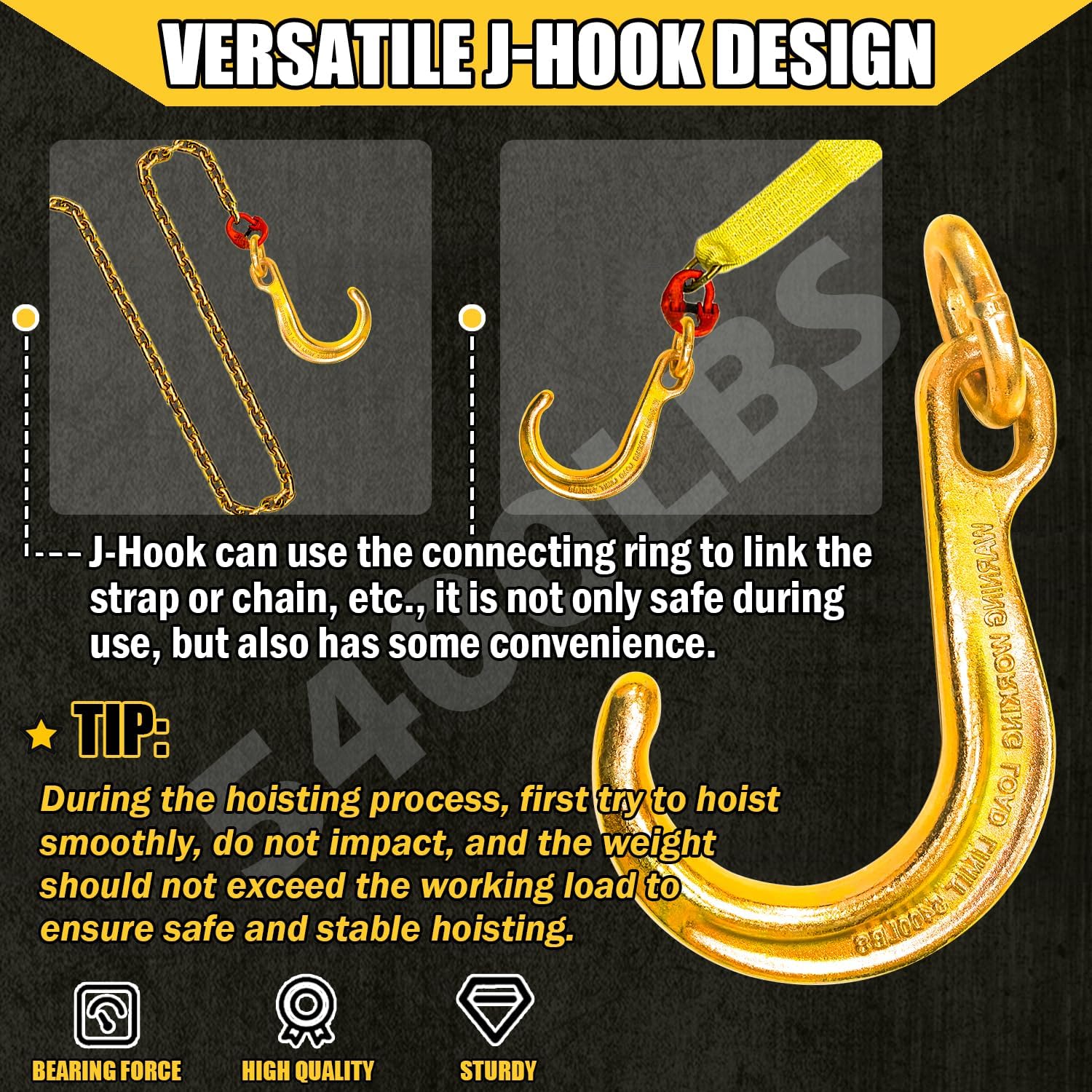 🟠【SAFE WORKING LOAD】J hook V chain tow bridle has a safe working, which is designed for safe, easy and efficient load lifting.
