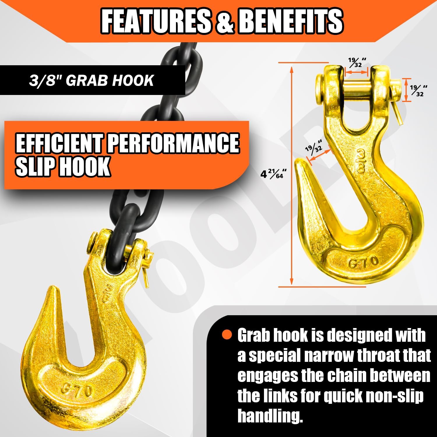 YATOINTO Grade 80 Log Chain 3/8'' X 14 Feet with Grab and Slip Hooks | Heavy Duty Chain WLL 7,100 lbs for Pulling & Towing