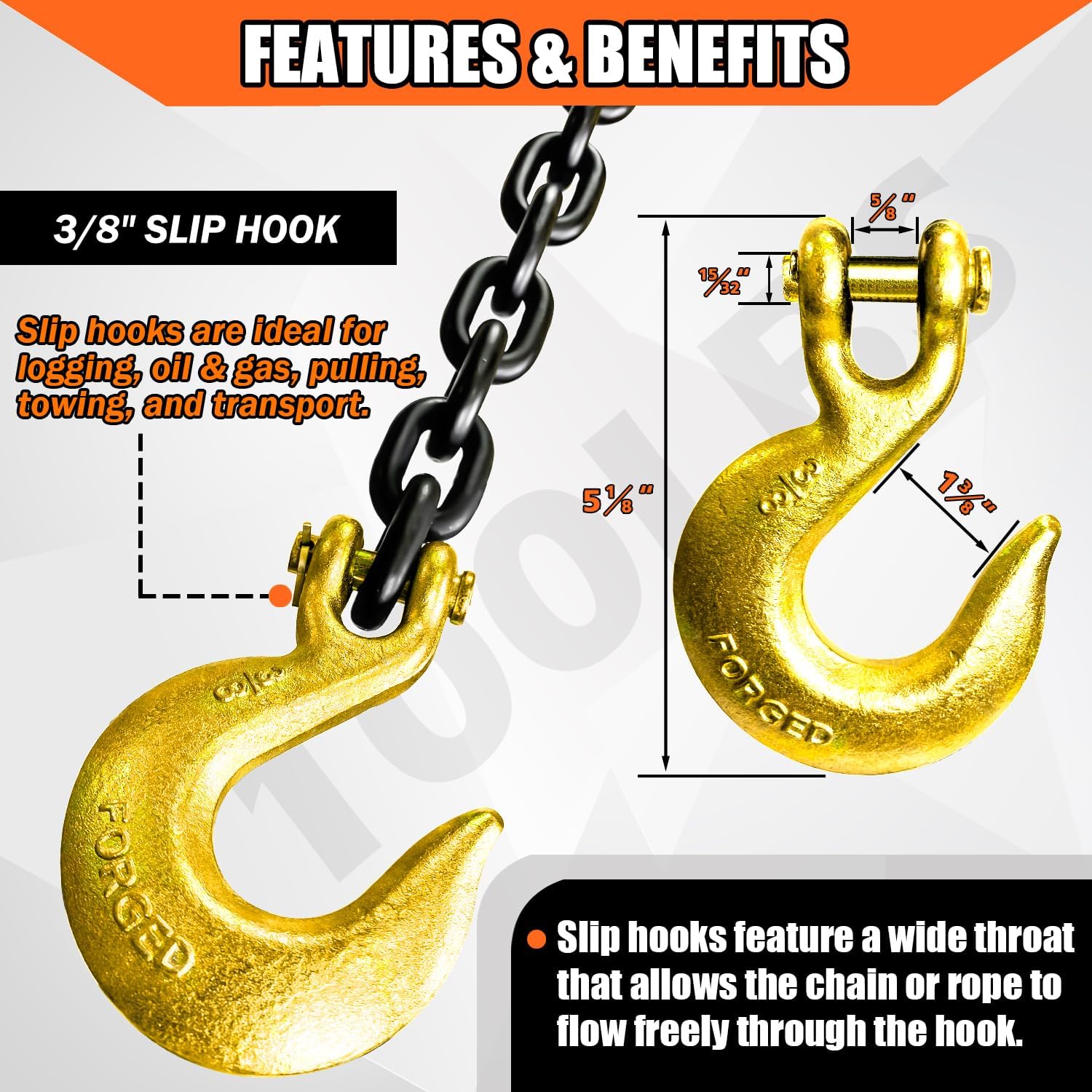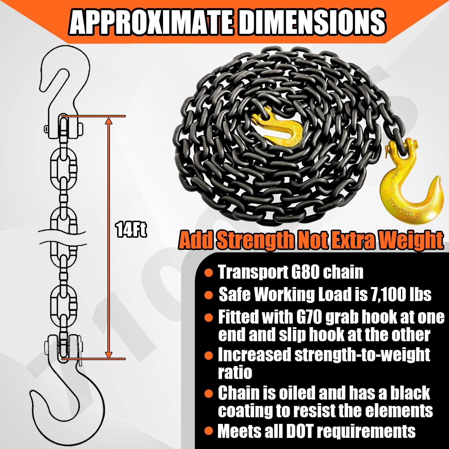π[ PROFESSIONAL DESIGN ] -- Maximum capacity of 7,100 lbs.! Grade 80 log chains are fitted with a grab hook at one end and a slip hook on the other, great for dragging and transporting heavy logs, towing and pulling.