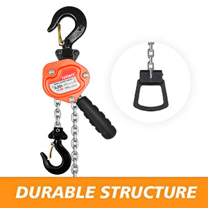【 HIGH QUALITY G80 CHAIN 】--G80 material chain, 360-degree rotary stamping lock hook corrosion resistant, wear resistant, no slip hook. The 1/4 ton chain hoist is endowed with the characteristics of safety, efficiency and durability