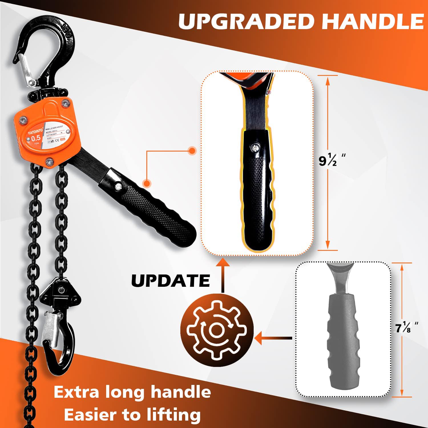 ⚙️【 UPGRADED HANDLE 】-- The handle of the lever hoist is much longer than the ordinary handle, the purpose is to reduce hand force and make the lifting easier.