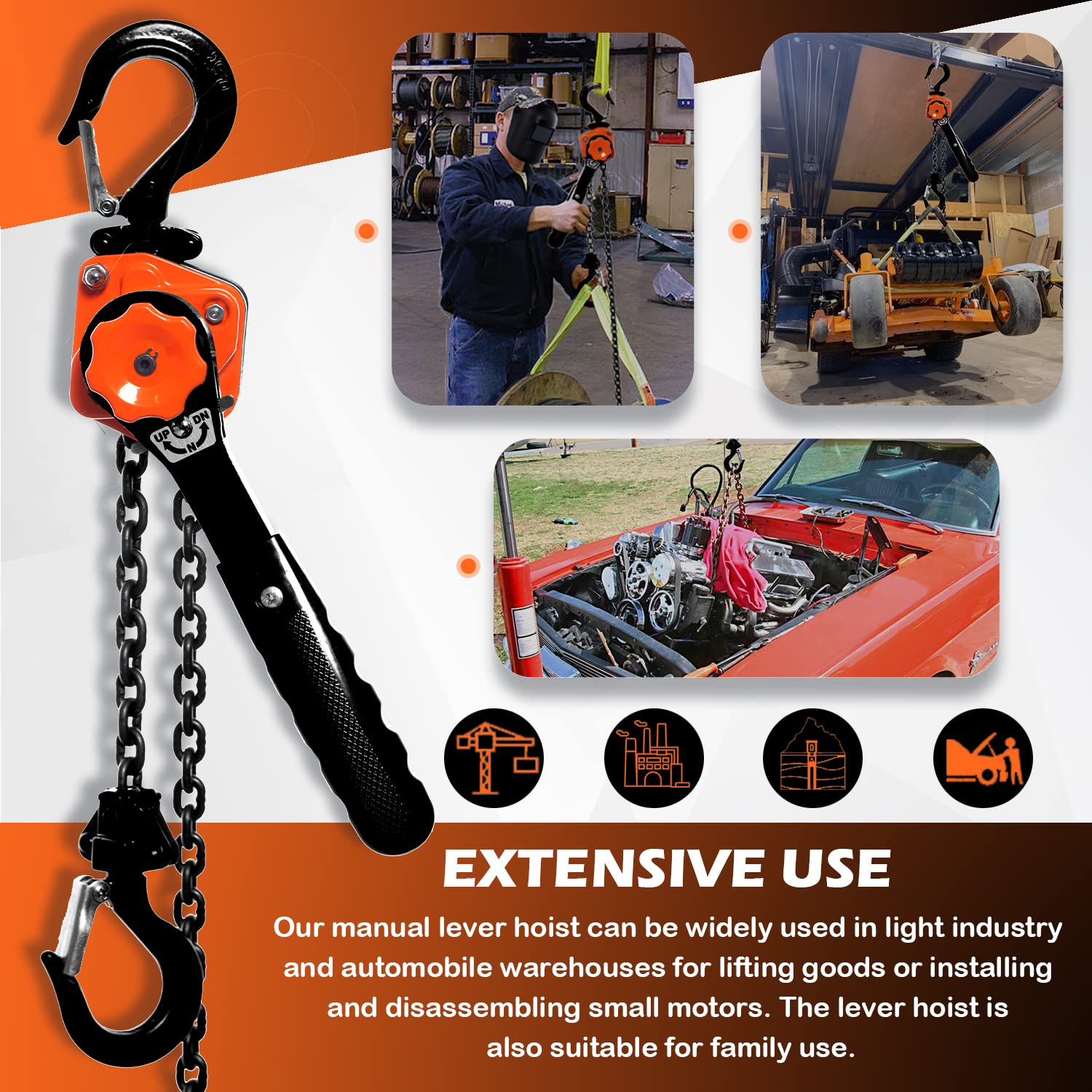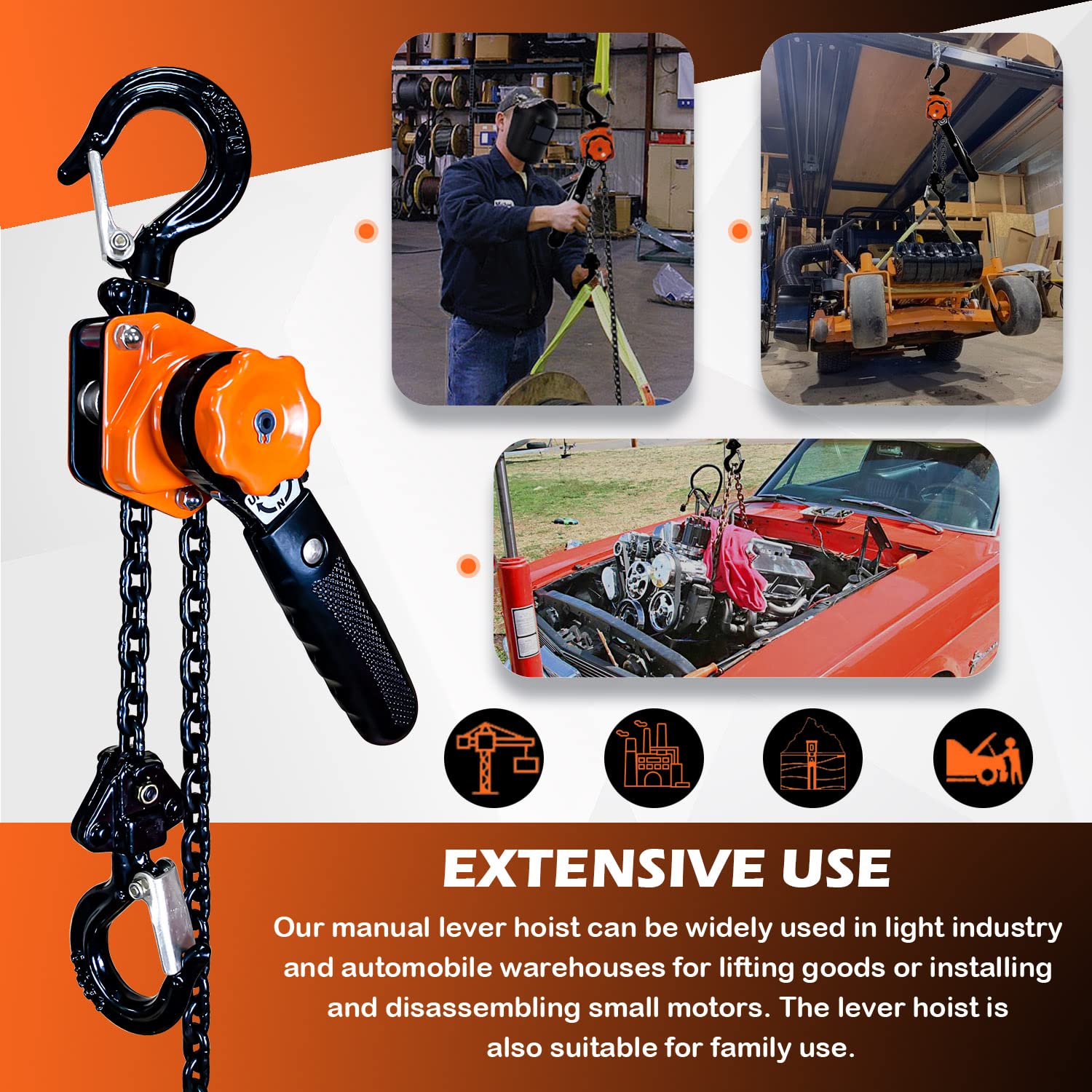 ⚙️【 WIDE APPLICATION 】-- Due to the stable load, it can be widely used in light industry and automobile warehouses for lifting goods or installing and disassembling small motors. The lever hoist is also suitable for family use.