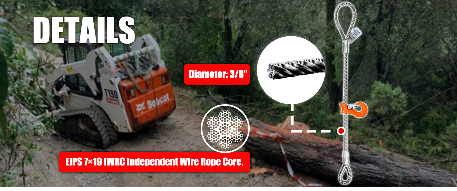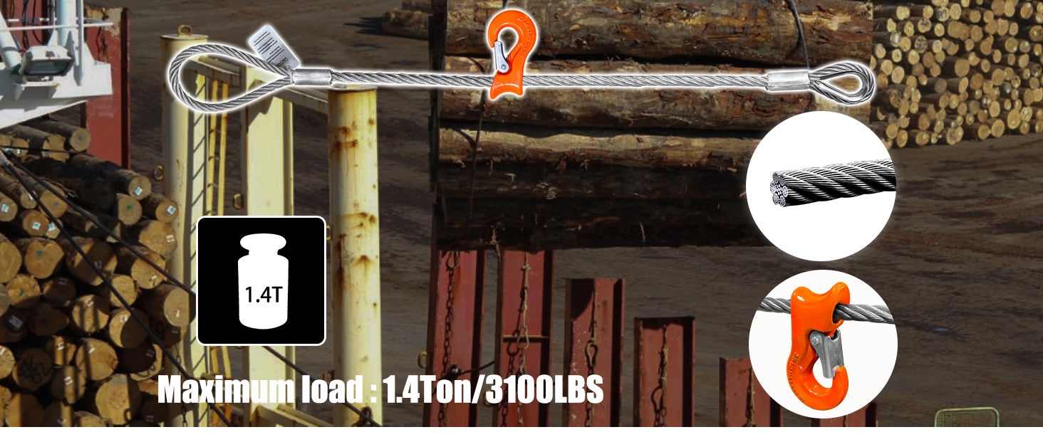 【High Strength Structure】: The sling ends are mechanically formed allowing for larger load capacities. A 7 x 19 IWRC (Independent Wire Rope Core) has anti-fatigue and wear-resisting properties.